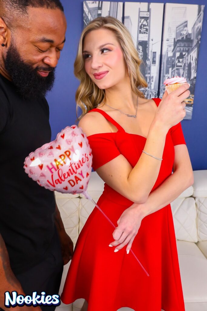 Living up to her name—Cheerleader Kait is toned, athletic, flexible, blonde, and the ultimate fantasy. Plus that wicked smile and the fact loves to fuck on camera and has boundless energy puts her at the top of everyone’s most wanted list. Her first Nookies scene, “Cheerleader Kait: A BBC For Valentine’s Day,” for Nookies Originals. Kait’s boyfriend has made a big mistake and decided to work late on the holiday. That’s OK, Kait has other plans that include her trainer, James Hardon, who has a legendary BBC, and she’s been obsessing over. He thinks he’s coming over for a workout, but she’s in a sexy dress and heels. Kait licks the cupcake and lets him know she wants to do the same thing to his dick. He admits he’s been checking her out too, and she immediately takes off his pants and makes good on her promise. After a nice long BJ, Kait and James fuck in cowgirl, reverse cowgirl, doggy, missionary, and prone bone before Kait drops to her knees for a giant money shot in her mouth.